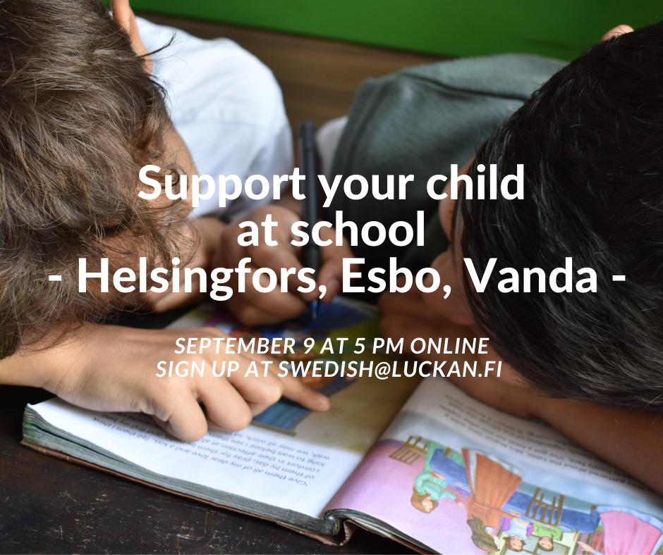 Samarbetet mellan hem och skola är viktigt i den finska utbildningssystemet, och det finns olika sätt att stödja ditt barn. Om ditt barn går i en svenskspråkig skola, så är det här ett bra infotillfälle för dig. Anmäl dig via epost: swedish@luckan.fi. Evenemanget sker digitalt, och deltagandet är kostnadsfritt. Vi kommer att tala engelska, men frågor kan ställas även på svenska.